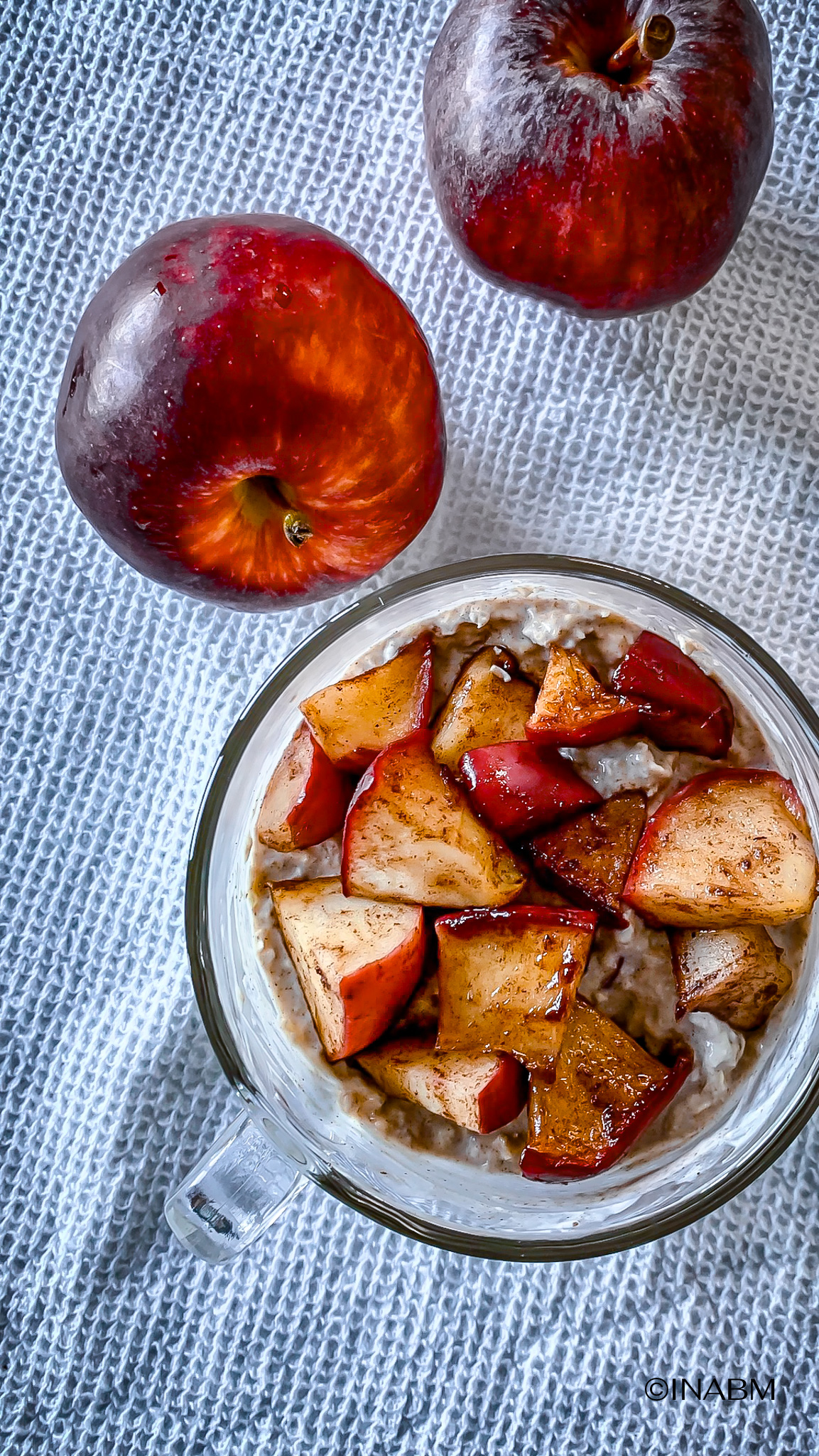 - Add half of apples into oats and mix, top oats with the other half